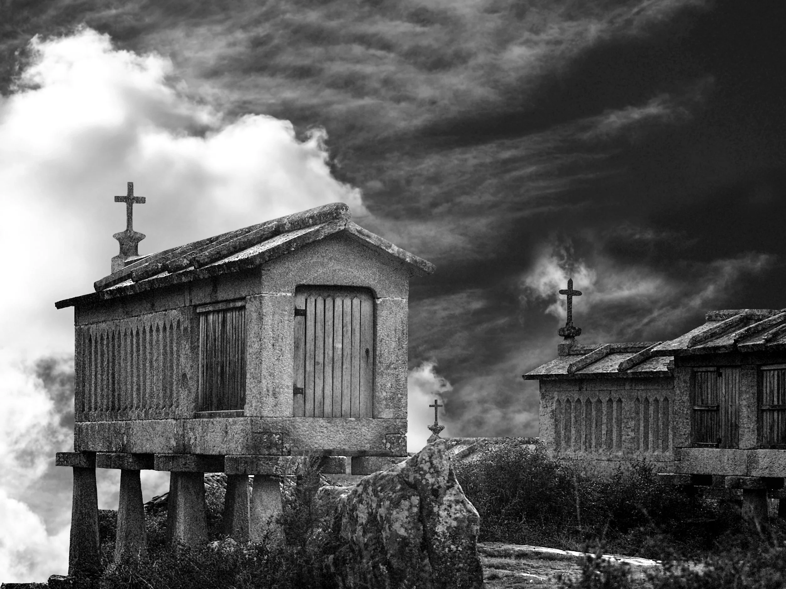 Located in Peneda Gerês National Park in Lindoso (Portugal), there is a collection of well-preserved granaries. These granite structures are designed to store and protect grain from rodents and are also used for drying agricultural produce. The granaries sit atop granite pillars known as "rat traps/"torna-ratos", which prevent rodents from accessing the stored grain. Additionally, the walls of the granaries feature openings that facilitate air circulation.